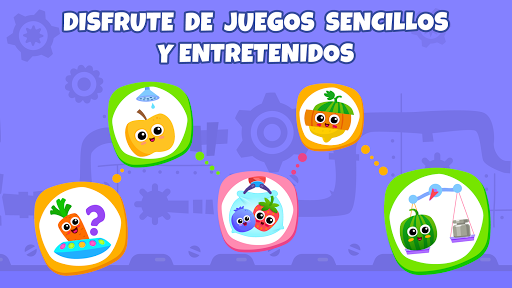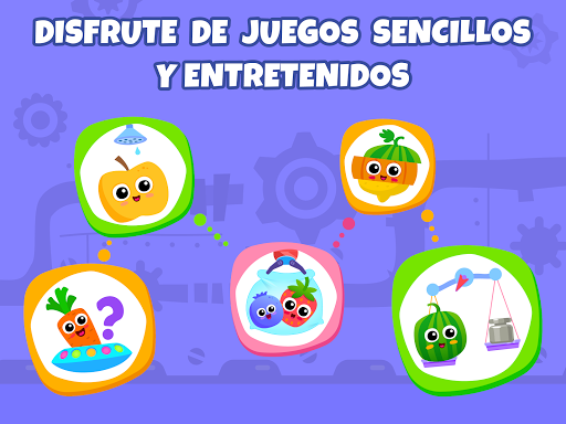 Explora un mundo asombroso de comida saludable con acertijos, tareas de lógica e historias breves y lindas sobre cocinar y comprar en juegos bebes gratis. Disfruta de juegos divertidos para niños y entretenidos con encantadores personajes de frutas y verduras: zanahoria, fresa, calabaza, tomate, brócoli y 20 más.