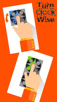 The goal is to match all elements with the fields of their color. All elements move clockwise. Tap to the center of each circle to rotate it.