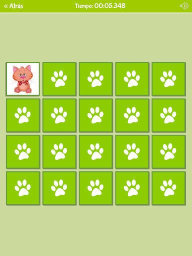 Diviértete jugando a este juego gratuito de memoria con imágenes de animales. Pulsa en las cartas para descubrir los animales y emparejarlos, cuando los emparejes las cartas desaparecen de la pantalla.