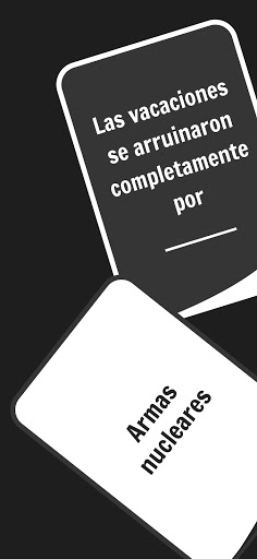 Usted también verá una tarjeta negra. Esta tarjeta contiene una oración que deberá completar con una (o más donde se solicite) la tarjeta blanca en su mano. Trate de elegir la tarjeta que hace que la oración en la tarjeta negra sea más divertida, satírica, irónica, o que sean los niños estúpidos en estos días. Por cierto, la tarjeta blanca que acaba de usar será reemplazada inmediatamente con una tarjeta blanca dibujada desde la cubierta, por lo que siempre tendrá tarjetas blancas 10.