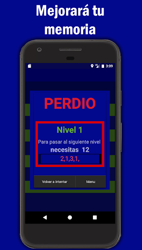 Dado el nivel en el que se encuentre el usuario se vera una determinada cantidad de números iniciales. El usuario tiene que memorizar los números que ve y después presionarlos cuando la aplicación se lo permita.