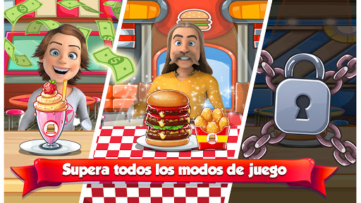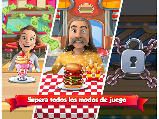 Descubre el modo de gestionar restaurantes de hamburguesas. Desbloquea 3 tiendas de comida rápida. ¡Recoge las monedas de tus felices clientes y supera niveles mientras te conviertes en el mejor chef de hamburguesas! Con cada nivel, desbloquea nuevos elementos y pasa por los mejores momentos de tu carrera.
