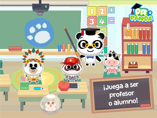 Descubre todas las aulas de la escuela de Dr. Panda. Haz esculturas de barro en la clase de arte, siembra el huerto que hay en el patio, cuida de Hambo el hámster o enseña matemáticas. ¡Hay miles de maneras de jugar!