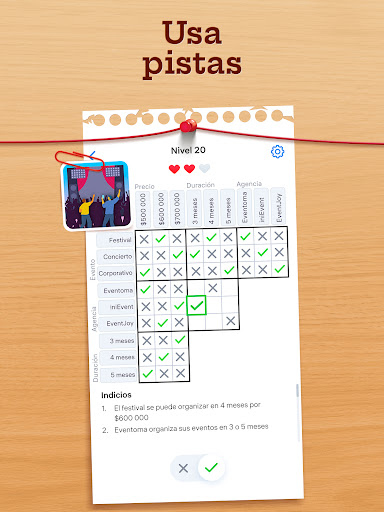 • ¡Usa el razonamiento, la eliminación y la lógica para rellenar las celdas restantes y haz tu deducción en cada uno de los acertijos en este juego de pensar!