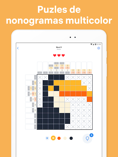- Si te atascas, usa las pistas para resolver más rápido el nonograma de color.