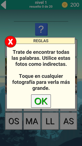 En cada nivel tienes 20 imágenes, con las que tienes que adivinar 20 palabras ocultas para pasar el nivel. Las fotos se abren alternativamente, hay un cierto número de fotos disponibles para usted, a medida que adivine que otros estarán disponibles para usted. El juego está disponible en 7 idiomas: Inglés, ruso, español, italiano, Portugués, alemán, francés.
