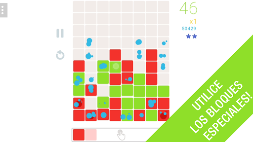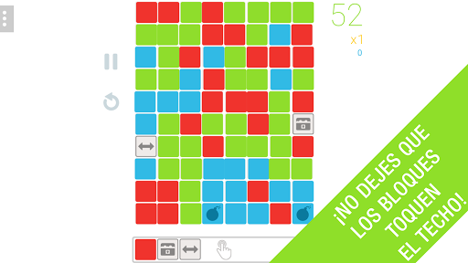 Si pulsa en la barra inferior donde se crean los bloques, puede enviar inmediatamente toda la fila de bloques al campo de juego. De esta manera usted es capaz de crear enormes grupos de bloques y eliminar todos a la vez. Dependiendo de la cantidad de bloques que destruya, se le dará Power-Ups que se colocan en el campo de juego de forma automática. Éstos pueden destruir una línea completa de bloques, un racimo grande o varias líneas transversalmente.