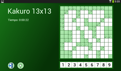 El Kakuro es similar a los crucigramas, pero en lugar de letras del tablero está lleno de números (1-9).