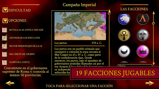 Embarca en una conquista histórica de Europa, África del Norte y el Oriente Próximo como una de las 19 formidables facciones que incluyen Egipto, la Galia, Britania, las polis griegas, Macedonia e Hispania.