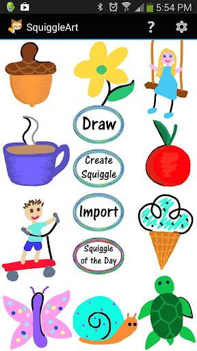 Squiggle Art offers hours of fun by challenging you to incorporate a squiggle into a drawing of your own. Challenge a friend using the Share feature, take on a new level of difficulty using the Squiggle Challenge, or upgrade to create your own Squiggles to work with and more.