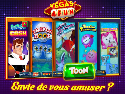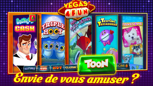 Vivez une expérience VIP à Vegas dans Vegas 4 Fun! Partez pour la destination des machines à sous premium gratuites, offrant des salles de machines à sous idéales pour tout joueur! Tentez votre chance en jouant à des célèbres jeux de machines à sous, aussi bien des machines drôles avec des personnages de dessins animés que des machines classiques à trois rouleaux tout droit sorties de Las Vegas! Accumulez une cagnotte impressionnante et vivez une expérience de casino AUTHENTIQUE et PALPITANTE, quel que soit l'appareil sur lequel vous jouez.