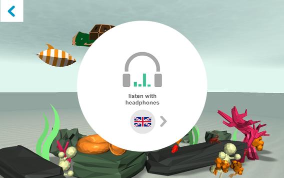 Choose to listen to a story about Kathie & Glenn, 2 kids that have found an old turtle shell that they use to go on a sea adventure. Or start a game where you have to protect the eggs from uninvited guests. You can even get creative and choose a game where you can make underwater Caribbean style music on a set of oysters. There's also the Reef Cleanup, where you need to collect rubbish from the reef surface with a small electric powered submarine.