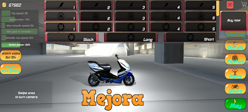 Comienza a jugar estos juegos de caballitos todos los días y conviértete en un profesional. El desafío completo del juego de deriva de bicicletas nitro, recoger pasajeros, entregar paquetes, endo y mucho más de forma gratuita. Cuando descargas nuestro juego de carreras de bicicletas sobre ruedas, ingresas a un mundo de aventuras y acrobacias de estilo libre que harán que cada minuto sea emocionante. Use indicadores como el embrague, el freno, el acelerador, la velocidad, el mapa para hacer acrobacias de estilo libre sin chocar ni chocar con obstáculos. Gana puntos cuando realices endos y completes Wheelie King 5: Moto Challenge sin estrellarte. Use estos puntos para actualizar y personalizar pintura, calcomanías y otras partes de su vehículo. Juega ahora a este juego de carreras de caballitos de desafío de motos y entra en un mundo de carreras de acrobacias en motocicletas.
