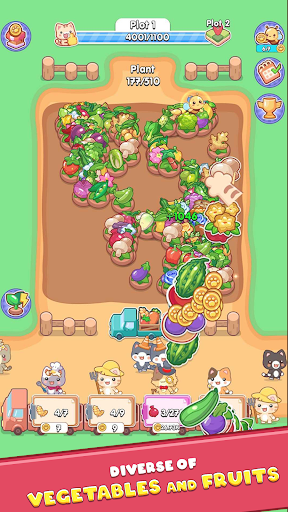 Kitty Farm Harvest is farming game where you can build a farm and grow your factory and truck. Plant, harvest, and trade goods to help your dream farm thrive!