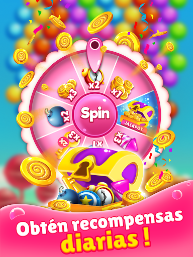 Además, juegue más y obtenga recompensas con toneladas de recompensas gratuitas de ruedas giratorias y cajas misteriosas. Las sorpresas con Candy Bubble Games no tienen fin.
