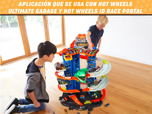 ¡La aplicación Hot Wheels Ultimate Garage hace que tu garaje cobre vida! ¡Solo tienes que conectar tu Hot Wheels id Race Portal a la línea de meta de tu garaje y empezar a competir! Defiende la ciudad del T-Rex y mantén tus coches a pleno rendimiento usando los boxes. Usa el juego para interactuar directamente con la aplicación a través de los brazos del robot.