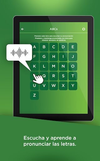 - Clips de sonido que muestran la pronunciación del banco de palabras y el alfabeto