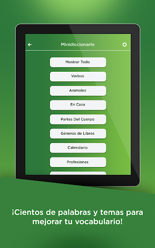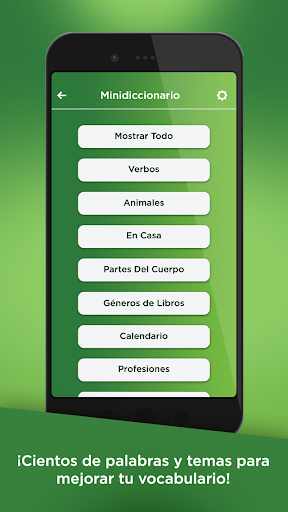 - Cientos de palabras organizadas en temas fáciles de entender