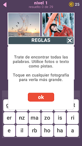 Una palabra para cada imagen, 29 palabras en cada nivel. Son 638 palabras
