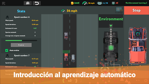 Las misiones tratan problemas reales que soluciona el aprendizaje automático. Esto incluye la creación de un coche que se conduce solo (con tu gato como conductor). Y si de veras quieres poner a prueba tu conocimiento de programación, puedes convertirte en el director de tecnología de una nueva empresa: ¡oponte a las brutales leyes del mercado con tus planes y habilidades! Gana una fortuna, hazles la peineta a tus jefes y evoluciona a gurú tecnológico... o piérdelo todo y arrástrate hasta la puerta del departamento de recursos humanos: había que intentarlo, ¿no?