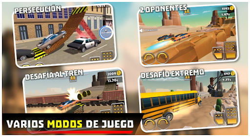 ¡Conduce en pistas con saltos, bucles, aros de fuego y muchos obstáculos más! ¡Corre contra un tren! ¡Vence a los coches de la policía en San Francisco y ten cuidado con los tranvías! ¡Juega carreras contra el automóvil oponente!