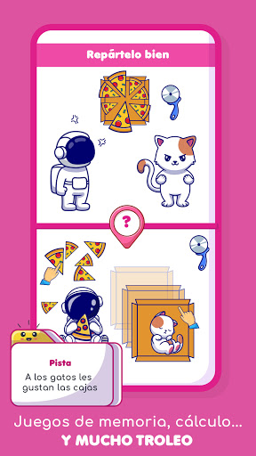¡El mejor juego de acertijos para reuniones familiares y de amigos! Puedes divertirte con tus amigos o familiares con este adictivo y divertido juego de IQ gratuito. Disfruta de los bonitos gráficos con un estilo único de dibujos animados y bonitas animaciones. ¡Horas de diversión para todos los que quieran mantener el cerebro en alerta! Jugabilidad simple y muy adictiva.