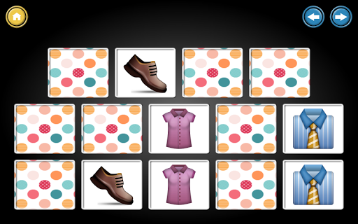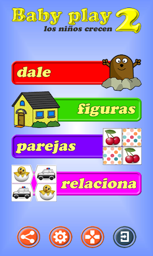 - Parejas: varios tableros con diferentes temáticas en los que se deben descubrir todas las parejas que se encuentran bajo las casillas. Los temas son frutas, animales, vehículos, deportes, ropa, comida, banderas y plantas.