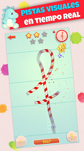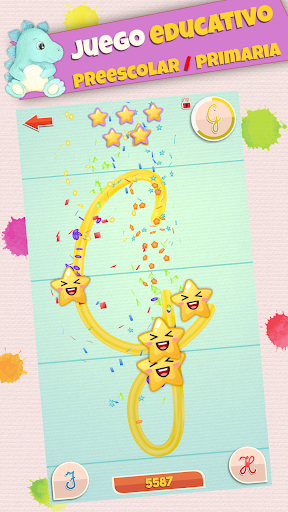 • 5 niveles de progreso, etiquetados con colores para cada glifo que le permite a los padres y profesores evaluar el progreso y las letras más practicadas del alfabeto.