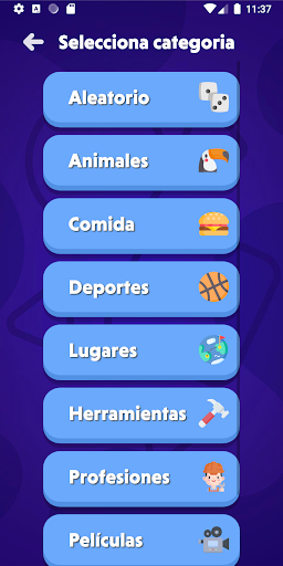 Incluye 8 temas diferentes: Aleatorio, Animales, Películas y muchos más! También puedes añadir tus propias palabras