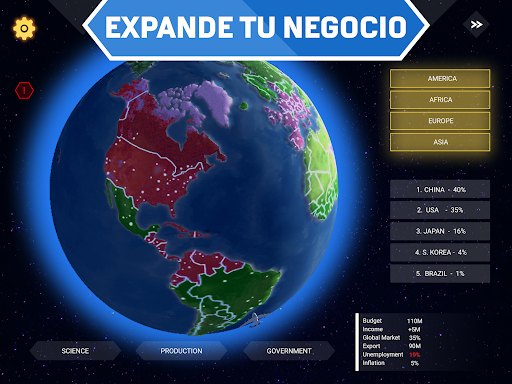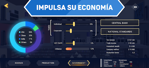 Las guerras del siglo XXI se basan en la dominación económica y el poder blando. No importa quién tenga más tanques o armas. La innovación y el crecimiento económico dominan el mundo. ¡Dirige a uno de los gigantes económicos del mundo para expandir la influencia de tu negocio en todo el planeta!
