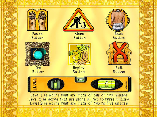 La versión completa está disponible para una suma modesta (¡soporta al artista!) E incluye 2 niveles adicionales donde hay palabras hechas Hasta 2-5 imágenes para encontrar. También hay niveles de bonificación; "Homonimos" donde tiene que elegir las palabras que suenan igual y "Thingamajigs" donde tiene que detectar las imágenes que representan los nombres.