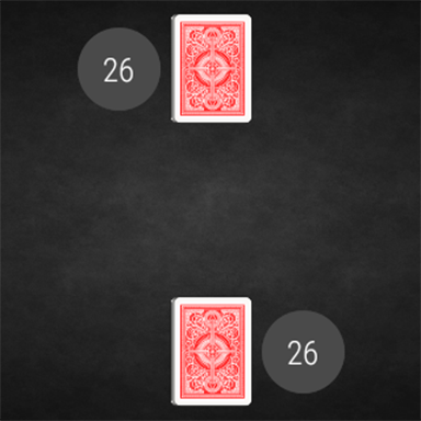 El juego se juega con una cubierta estándar de 52 tarjetas.Los trajes son ignorados en este juego.Trata todas las cartas, para que cada jugador tenga 26. Los jugadores no miren sus cartas, sino que los mantienen en un paquete boca abajo.El objeto del juego es ganar todas las cartas.Ambos jugadores ahora giran su tarjeta superior boca arriba y ponlos en la mesa de lado a lado.Los jugadores repiten esto hasta que haya dos cartas del mismo rango (por ejemplo, dos tomas).Luego, el jugador jugó la última carta toma todas las cartas entre las tarjetas con el mismo rango (las tomas en este ejemplo).Luego el jugador puso las cartas en la parte inferior de su cubierta.El juego continúa de la misma manera hasta que uno de los jugadores tiene todas las cartas.Él es el ganador y el otro pierde el juego.Esto puede llevar mucho tiempo.