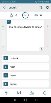Disfruta de nuestro juego gratis de trivia en español resolviendo cada una de sus interrogantes... desde preguntas fáciles hasta preguntas que te harán pensar un poco más, pero no te preocupes si llegas a fallar o respondes de manera acertada tendrás acceso a la respuesta correcta seguida de una justificación que en este caso sería el porqué de la respuesta para una retro alimentación de alguna escena en especial y así podrás demostrarle a tus amigos que tú eres todo un Hokage o eres uno de los Jonin.