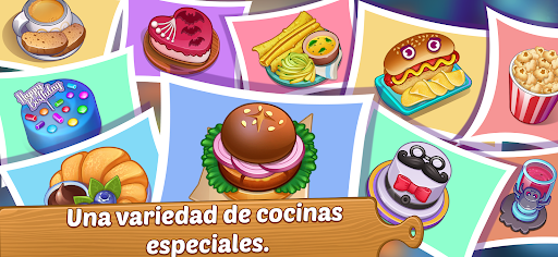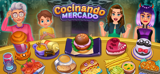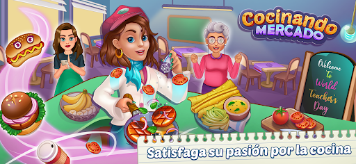 ¡Prepara, cocina y sirve deliciosos platos de comida en el mercado de cocina! Asa hamburguesas con queso u hornea pizza... Cocina perritos calientes, explora la cafetería, la panadería y muchos otros restaurantes. ¡Sal de las cocinas a la hora de la cena! ¡Domina menús masivos y conviértete en un maestro chef loco!