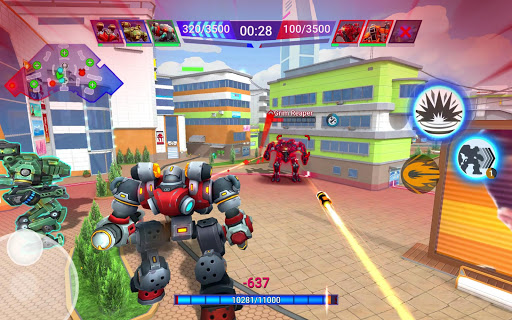 Lucha con tus amigos en batallas por equipos en exclusivas y emocionantes arenas de combate multijugador. Descubre y actualiza nuevos robots y armas con potentes habilidades definitivas únicas que podrás usar estratégicamente para controlar zonas enemigas en un mundo gigante de transformers. ¡Analiza tus máquinas de guerra para que trabajen mejor entre sí y muestra al resto de tu equipo quién es el líder! ¡Únete a clanes y equipos para convertiros en expertos de la arena!