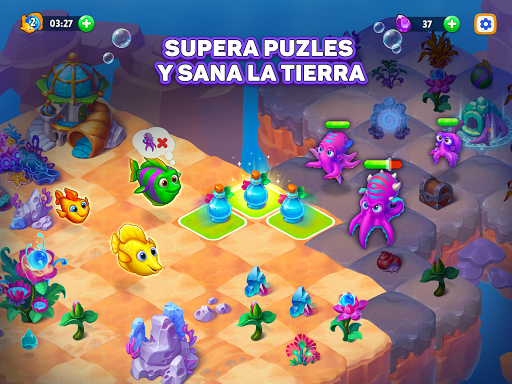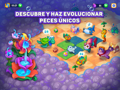 Haz que todo evolucione y limpia el fondo marina para desbloquear aún más niveles. Pásalo genial con las relajantes decoraciones para tu acuario. Planea tus movimientos, personaliza el fondo marino y haz evolucionar a tus mascotas. ¡Todo un océano en tu pecera!