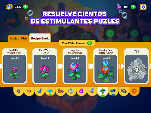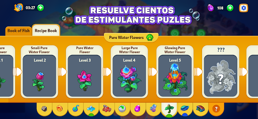 Resuelve todo tipo de puzles y desbloquea un montón de especies marinas nuevas. Brillantes🐠, gelatinosos🐟, viscosos🐡... ¡Hay de todo! ¿Cuántos tipos distintos serás capaz de tener en tu acuario?