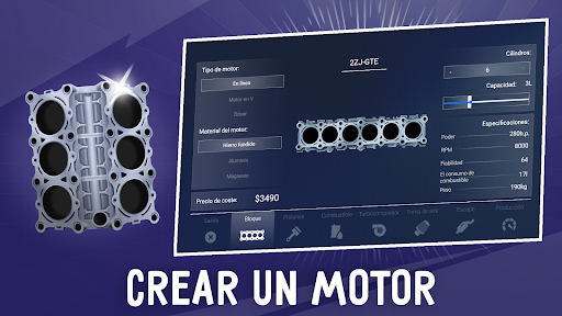 Cree el motor perfecto para su automóvil: ya sea un V12 grande y potente o un motor de 4 cilindros en línea pequeño pero eficiente, casi todos los diseños de motor comunes, varios sistemas de turboalimentación están disponibles para la construcción. Utilice ajustes detallados del motor para mejorar su rendimiento.
