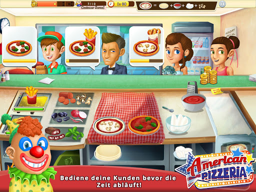 ¡Cocina pizza deliciosamente crocante en American Pizzeria! ¡Explora y sirve pizzas con el auténtico estilo de Nueva York, Chicago, California y la Napolitana, y asegúrate que todos los clientes obtengan un servicio de tres estrellas!