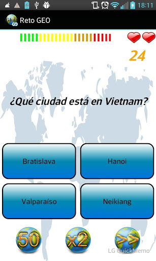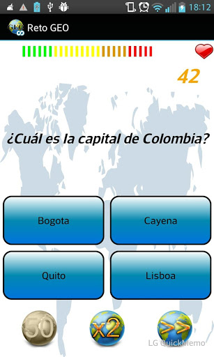 Juego de geografía para niños y adultos, pon a prueba tus conocimientos con este quiz. Compite por ser el que más sabe de Geografía, responde correctamente las preguntas para sumar puntos, mientras más rápido respondas más puntos lograrás. En cada partida contarás con 3 comodines, el del 50%, el doblar puntos, y el pasar la pregunta.
