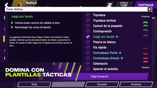 Crear una filosofía ganadora en la tabla de tácticas nunca ha sido tan fácil. Las nuevas plantillas tácticas te permiten hacer partidas rápidas con estilo, mientras que los nuevos roles de jugador y las opciones de lanzamiento renovadas mejorarán tu rendimiento.