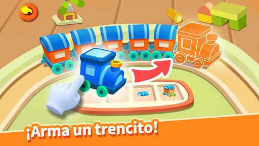 El Bebé JoJo está despierto. ¡Ven a jugar con él y los juguetes! Junta las rueditas redondas y coloca el vagón largo. ¡Arma un tren que le guste a JoJo!