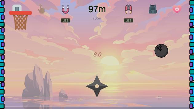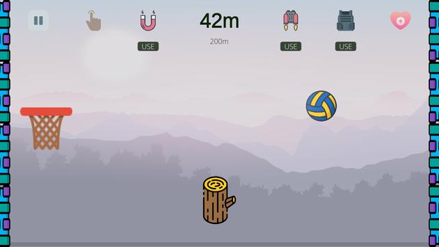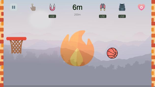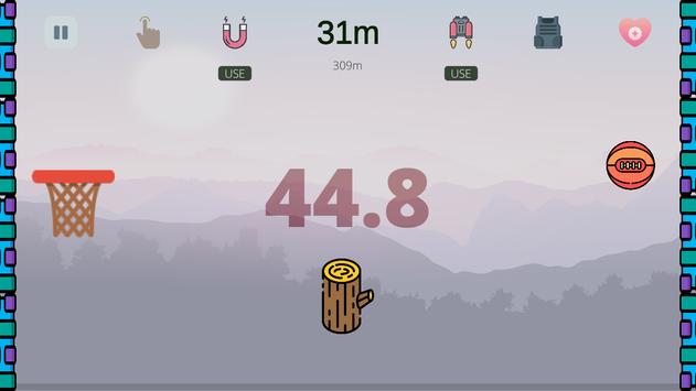 Nuestro juego no es como otros juegos de basquet o deporte en cuales sólo tu score aumenta cuando acertas un tiro. En "Hoop Mountain" por cada tiro acertado subes un metro y así escalas la montaña pero cada 10 metros vendrá una característica nueva así que no hay posibilidad de aburrirse acá...