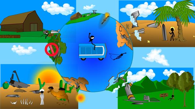 El orinal del redneck stickman también sigue mejorando en cada nivel. Al principio, es como un carrito de compras, el carrito de compras sigue actualizándose a un avión avanzado. En los niveles posteriores, el redneck se pega como un carrito de héroe.