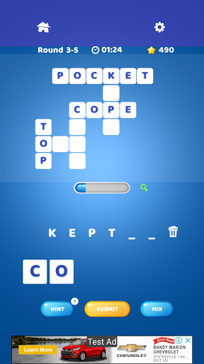 : el juego le ayudará a resolver el rompecabezas le brindó una pista cuando encuentre palabras válidas.Son 2 modos.Cronometrado y sin punta.