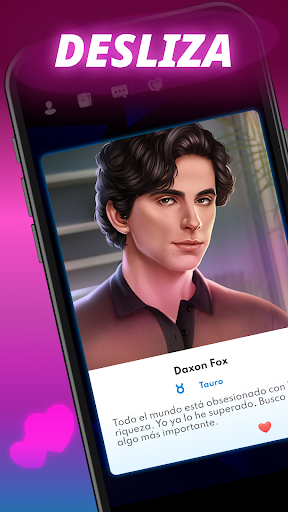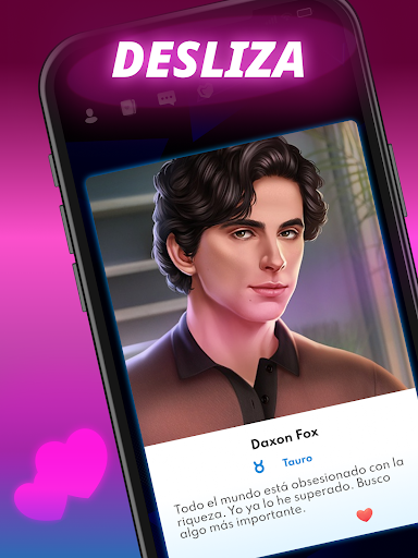 Explora tus fantasías en el juego en el que todos tus sueños pueden hacerse realidad. Tenemos un montón de personajes interesantes para elegir. ¿Prefieres a un atractivo director ejecutivo, un nómada solitario, una posible estrella de la música o alguien de la casa real? Todos tienen su propia historia única y excitante. ¡Descubre los giros inesperados y sus confesiones secretas! Chatea, haz tus elecciones y averigua hasta dónde te lleva esta app para ligar. Te esperan un montón de romance, aventuras y drama.