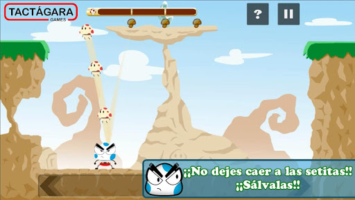 En este juego controlarás con tu dedo al heroe champiñón, y deberás llevar a las setitas al otro lado del barranco y evitar que caigan al suelo. En tu tarea como heroe recibirás ayuda de distintos power-ups y tendrás que evitar el ataque de distintos enemigos que te encuentres. ¿Podrás salvar a todas las setitas?