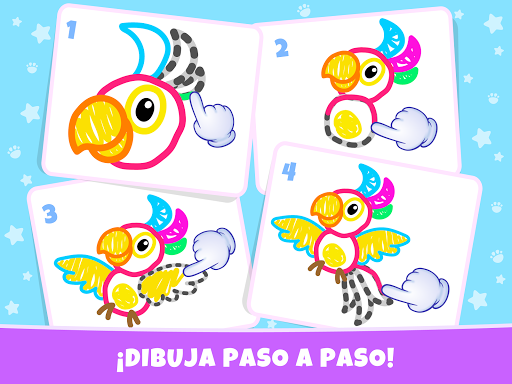 ¡Animales divertidos gratis - ahora todos los niños pueden dibujar a su mascota favorita en juegos de colorear niños! Cada parte de la dibujo para niños imagen se anima por separado en un proceso único de los juegos de aprendizaje.🎨