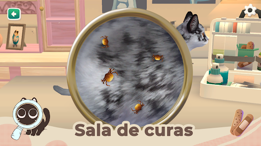 En la vieja casa solía vivir una anciana que cuidaba de todos los gatos. Ahora tú estás en su lugar y te encargas de todas las tareas. De vez en cuando un gato se aparece en la puerta de tu casa y quiere que lo acojas. Pero ¿tienes espacio suficiente? Asegúrate de haber hecho todos los quehaceres del hogar, de que las habitaciones estén ordenadas y decoradas y de que la sala de curas esté preparada para los pequeños exámenes. Un veterinario está a tu lado para ayudarte con el cuidado del gato.