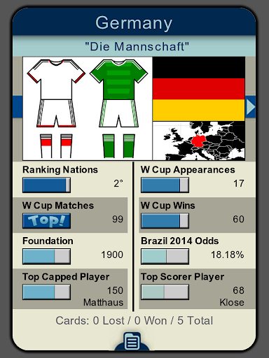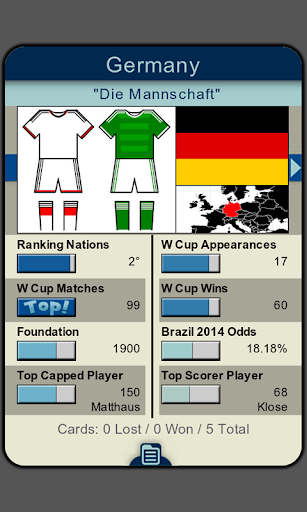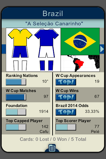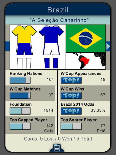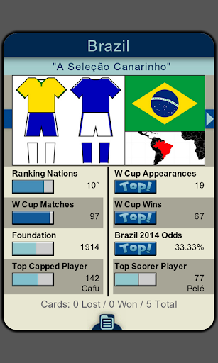 Neste jogo educativo, descubra informações incríveis sobre as 32 seleções que participaram da copa do mundo no Brasil 2014. Você poderá jogar frente-a-frente com outro jogador no seu próprio smartphone, graças a tecnologia NearBytes.